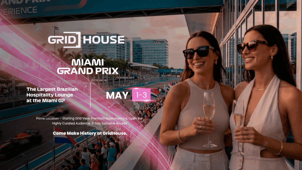 We are talking about GridHouse, the largest Brazilian hospitality lounge at the Miami Grand Prix. Designed as a meeting point for culture, business, and adrenaline, the space promises to be the most vibrant “home” of F1 in Florida, blending Brazil’s warm energy with world-class hospitality services.